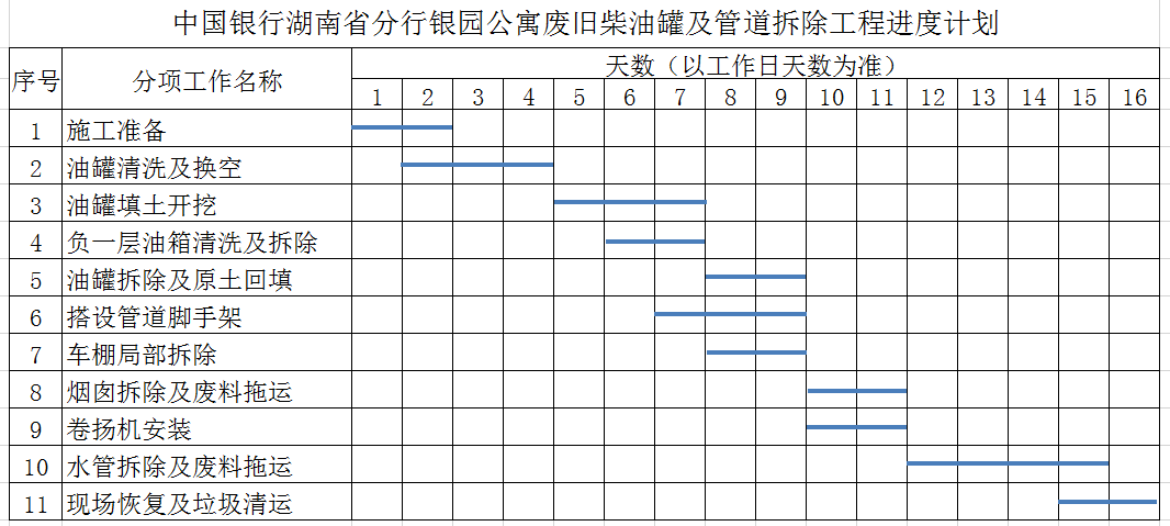 按照進(jìn)度計(jì)劃安排,施工計(jì)劃工期為16個(gè)工作日。