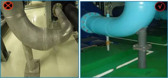 32、泵房管道從下向上水平進(jìn)泵時(shí)未采用偏心變徑管并管頂平接