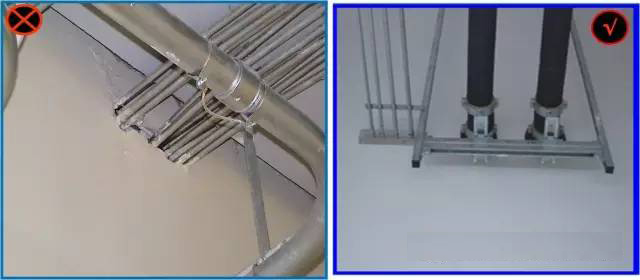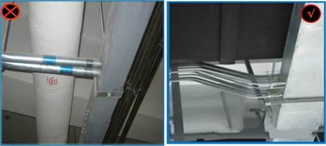 在機(jī)電安裝工程施工過程當(dāng)中,由于施工隊(duì)伍的人員素質(zhì)參差不齊,同時(shí)缺乏施工規(guī)范的基本理論及相關(guān)實(shí)踐知識(shí),加上管理層對工程質(zhì)量要求比較松懈,創(chuàng)優(yōu)理念不足等因素,因此工程質(zhì)量總是會(huì)有屢見不鮮的各種問題存在。以下是安裝老師傅通過對工程實(shí)例的研究,并總結(jié)安裝工程中那些常見的質(zhì)量問題,以錯(cuò)誤做法與正確做法進(jìn)行對比展示的方式,非常明了,分享給大家以供參考借鑒!