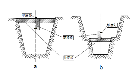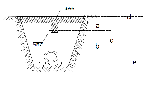 為控制溝槽開挖的深度,要測量出坡度板板頂?shù)母叱?。板頂高程與相應的管底設計高程之差,就是從板頂向下挖土的深度。