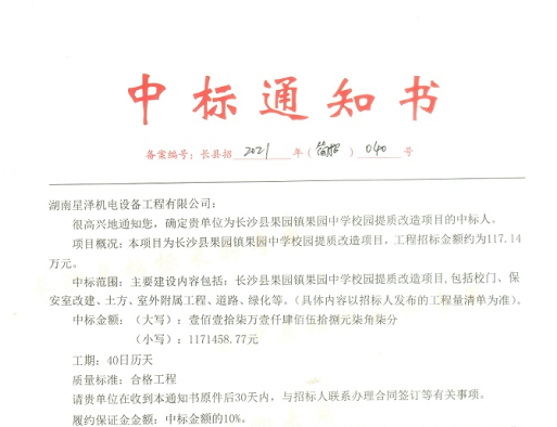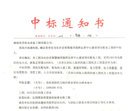 “尊敬的湖南星澤 機電工程有限公司,很高興地通知您......"