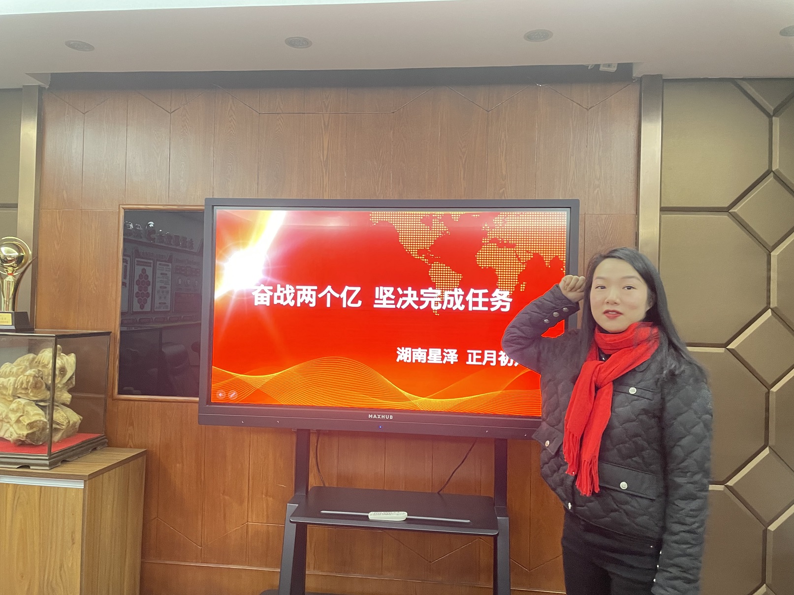 正月初八我們開工啦!伴隨著雄壯的國歌聲,湖南星澤 公司2023年新年茶話會正式開場,茶話會上公司宋總為每位員工派發(fā)了新年紅包,每位參會人員分享了一個勵志或是正能量的故事,公司總經(jīng)理孫總致新年賀詞并提出新年展望定下公司新年的奮斗目標,2023年公司的業(yè)績目標為兩個億,每位員工各分得業(yè)績?nèi)蝿?wù),并紛紛上臺宣誓言。