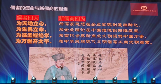 在演講的最后,黎紅雷教授慷慨激昂地指出,北宋儒學(xué)家張載曾經(jīng)提出著名的“四為句”:“為天地立心,為生民立命,為往圣繼絕學(xué),為萬世開太平”,成為一代又一代儒者的宗旨和使命。當(dāng)代新儒商在堅定遵循這一天下儒者共同的宗旨和使命的基礎(chǔ)上,結(jié)合自身的特點及其面對的時代課題,提出“新四為句”作為自己的目標(biāo):“為儒家思想在企業(yè)實現(xiàn)創(chuàng)造性轉(zhuǎn)化,為企業(yè)理論在中國推進(jìn)創(chuàng)新性發(fā)展,為當(dāng)代世界新商業(yè)文明提供中國的方案,為中華民族現(xiàn)代文明譜寫工商文明的篇章!”