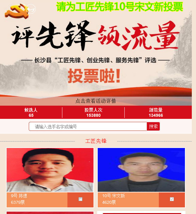 目前,宋文新正在參加長沙縣“工匠先鋒、創(chuàng)業(yè)先鋒、服務先鋒”評選活動,請您動動手為他投上寶貴的一票吧!點擊進入投票>>>>>>(請為工匠先鋒10號宋文新投票)