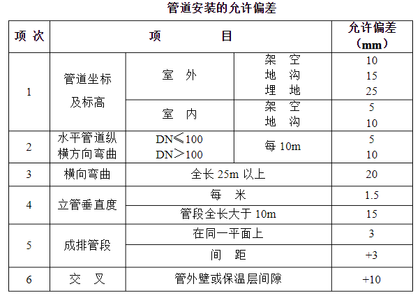 2.7.2管道安裝的允許偏差符合下表的規(guī)定: