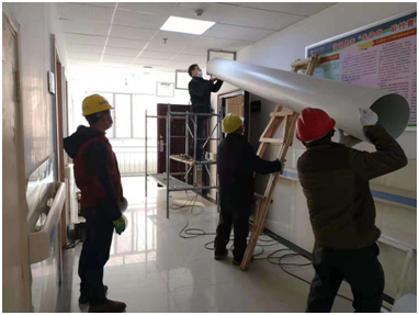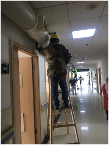 本項目是作為冠狀病毒隔離病房使用,公司接到任務(wù)時,限時三天要完成施工,是一個應(yīng)急性施工任務(wù);我公司負(fù)責(zé)的是本項目的新風(fēng)系統(tǒng)施工,為給工作人員健康舒適的工作環(huán)境,隔離病房樓內(nèi)公共區(qū)域需供提新風(fēng),保持正壓。