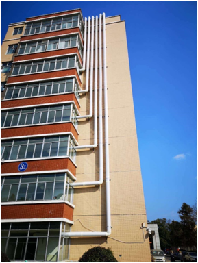 新風(fēng)管道考慮施工工期及使用要求,主管采用Φ315的UPVC排水管作為送風(fēng)管道,管道經(jīng)每層走道吊頂下方、外墻與屋面風(fēng)機(jī)連接。在每層走道位置均勻設(shè)置送風(fēng)口,送風(fēng)口均采用直徑200mm圓風(fēng)口。
